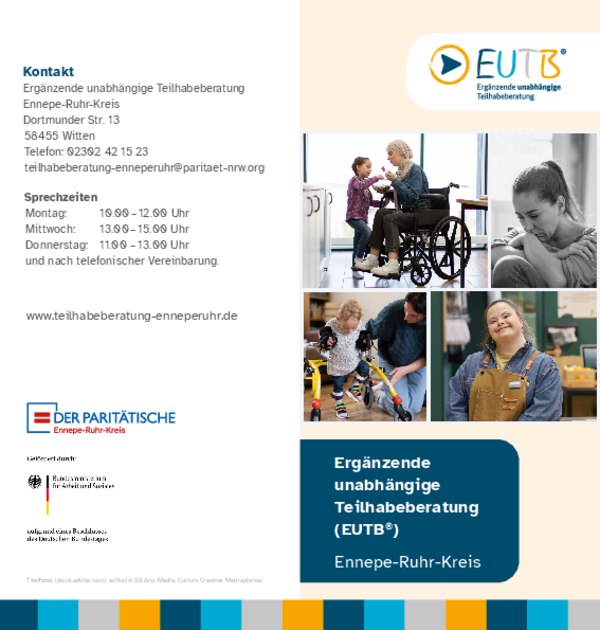 Die Ergänzende unabhängige Teilhabeberatung (EUTB®) wurde durch das Bundesteilhabegesetz geschaffen. Sie ergänzt bereits bestehende Beratungsangebote. Sie wird vom Bundesministerium für Arbeit und Soziales gefördert. Träger der Ergänzenden unabhängige Teilhabeberatung (EUTB®) Ennepe-Ruhr-Kreis ist der Paritätische Wohlfahrtsverband NRW. Der Verband setzt sich schon lange für mehr Teilhabe und Inklusion ein. Auch in anderen Städten und Kreisen in Nordrhein-Westfalen gibt es Beratungsstellen. Viele davon sind ebenfalls beim Paritätischen NRW angesiedelt. Einen Überblick über die EUTB®-Beratungsstellen gibt es auf der EUTB®-Website.